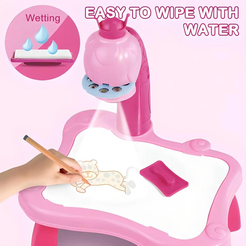 رسم طاولة للاطفال مزودة ببروجكتر LED مضيء، تتيح تجربة تعليمية وترفيهية مبتكرة، تساعد الأطفال على تطوير مهارات الرسم والتلوين بطريقة ممتعة وجذابة، مناسبة كهدية للبنات والأولاد.